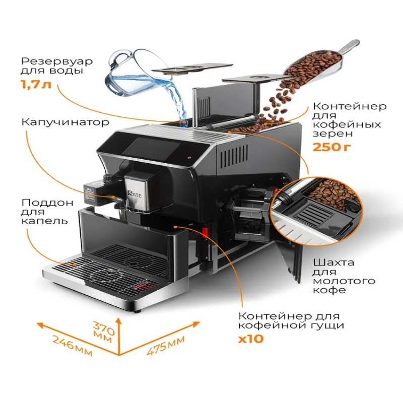 Кофемашина автоматическая SATE CT-200 с сенсорным экраном, предварительное смачивание, автоматически